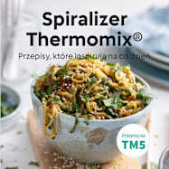 Z urządzeniem Thermomix® przygotowywanie potraw jest niezwykle proste, a dzięki nakładce krojącej Thermomix® 2.0 ze spiralizerem Twoje kulinarne kreacje będą prezentować się jeszcze lepiej. Wypróbuj zupełnie nowe rodzaje cięcia - wstążki o dwóch grubościach i to w mgnieniu oka! Wprowadź więcej warzyw i owoców do swojej kuchni, tworząc nowe kompozycje kulinarne.