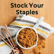 A well-stocked pantry allows you to whip up meals quickly. Make your own baking mix, butter and seasonings from scratch and fill your pantry with real food staples. Use these basic, versatile ingredients frequently to save time and money.