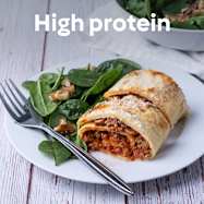 High protein turkey and mushroom roulade in cottage cheese wraps
