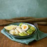 Schwarzwurzeln in Zitronensauce mit Petersilerdäpfeln