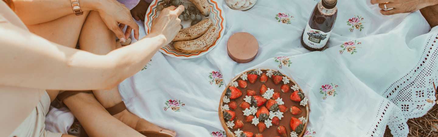 必备野餐用品: 野餐垫,野餐盘,纸巾,垃圾袋等。