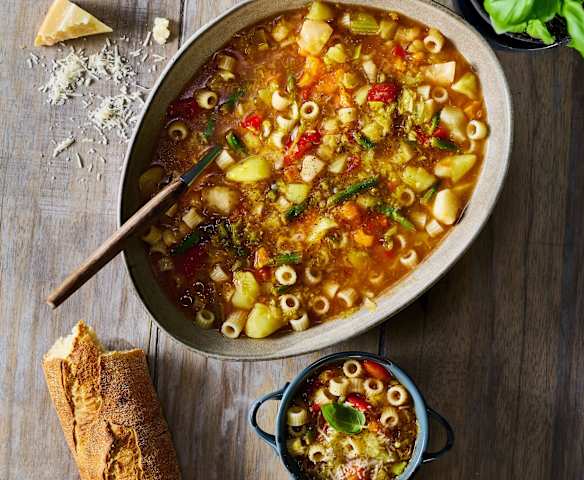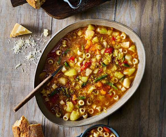 karışık sebze (ör. patates, havuç, kabak, kereviz sapı, domates, pazı yaprağı, pişmiş kuru fasulye, bal kabağı), ihtiyaca göre parçalara bölünmüş (yakl. 3 cm)600 g