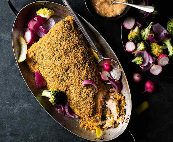 Fırında Parmesan Kıtırlı Somon ve Sebzeler, Limonlu Krema Sos