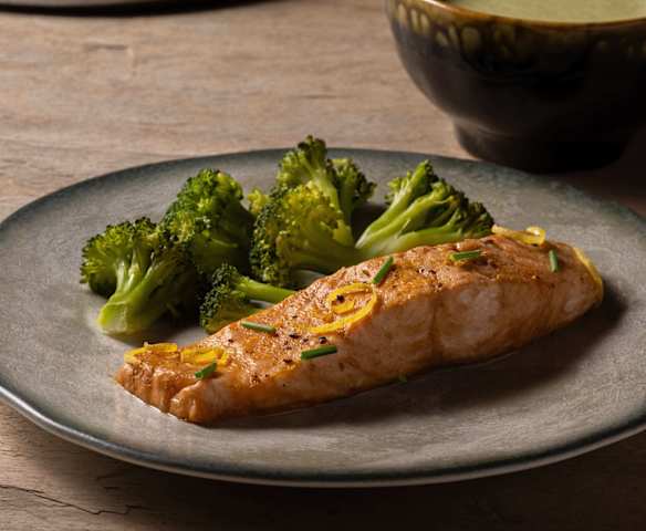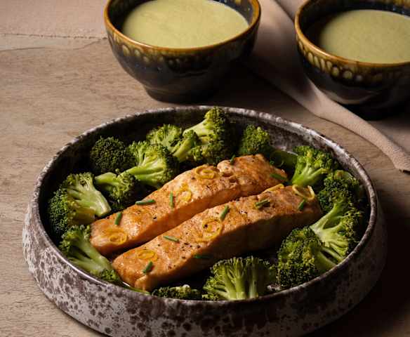 Zencefilli Bezelye Çorbası, Brokoli Eşliğinde Limonlu Somon