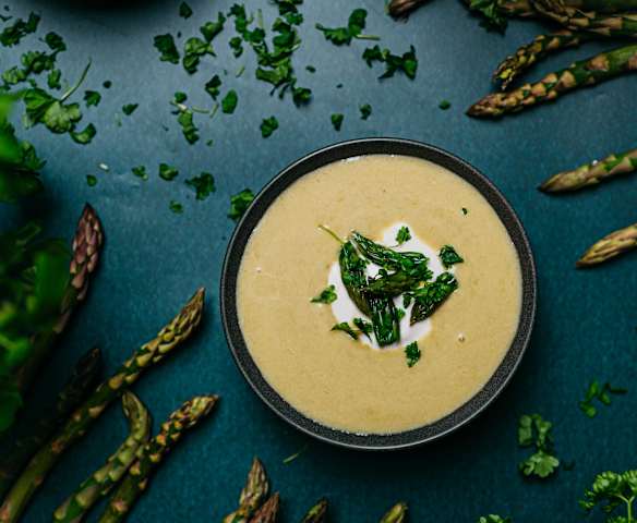 Česneková krémová polévka se šlehačkou a opečenými krutony