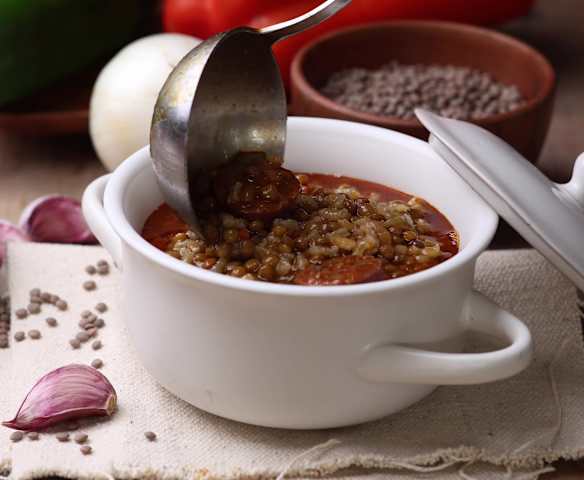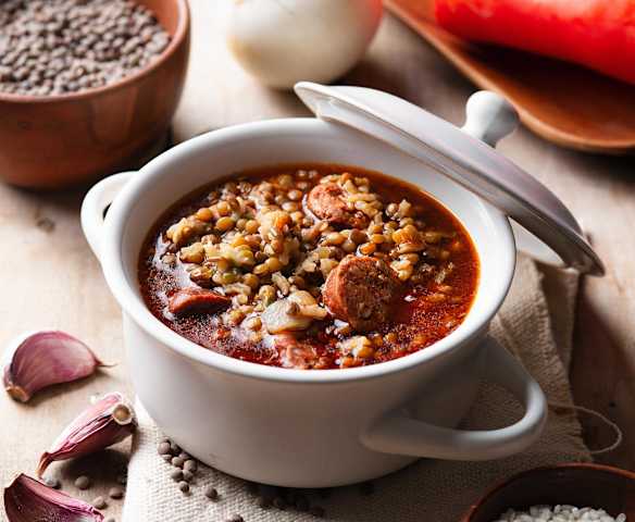 Gazpacho de remolacha con ensalada de lombarda y queso feta
