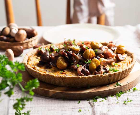Creme de chuchu e feijão-verde e lasanha de abóbora e cogumelos