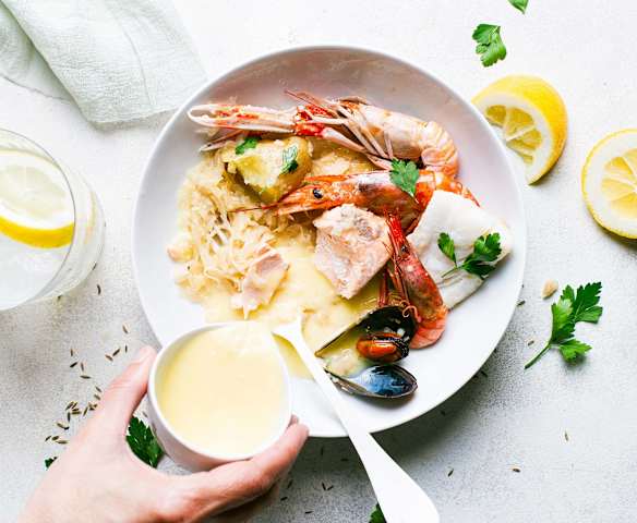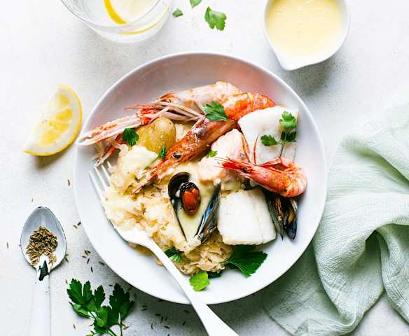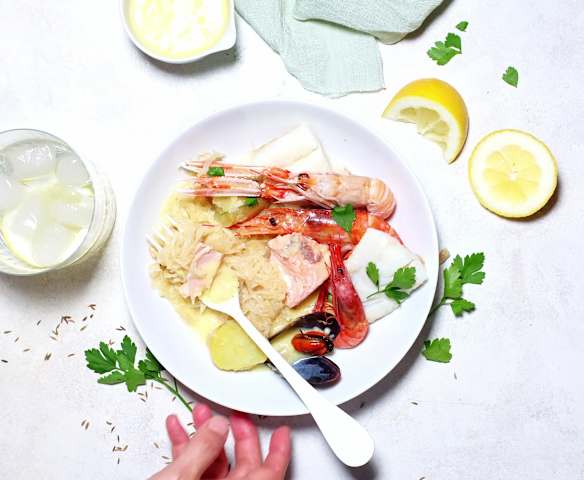 Salmón al vapor y arroz basmati con salsa crema de eneldo
