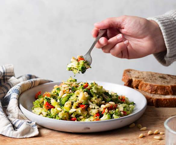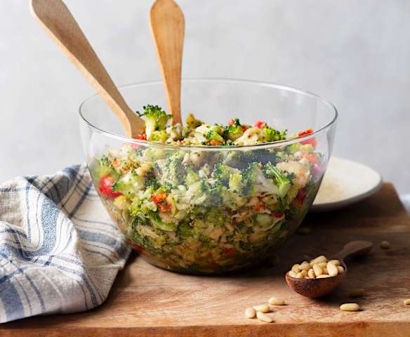 Kırmızı Biberli ve Kabak Çekirdekli Çiğ Brokoli Salatası