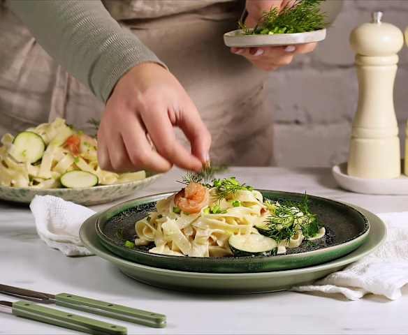 Makaron w kremowym sosie pomidorowo-pieczarkowym