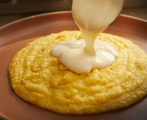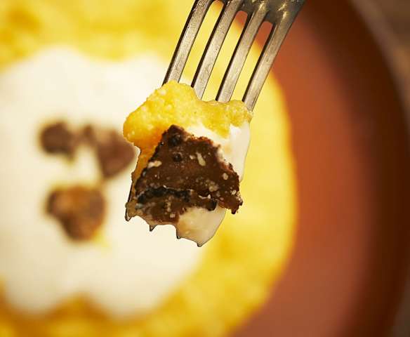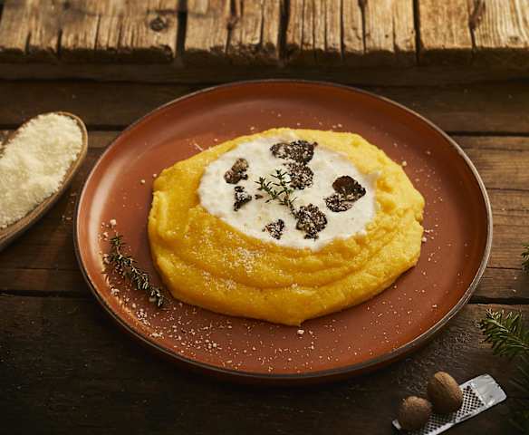 Polenta morbida con fonduta di Parmigiano Reggiano e tartufo nero