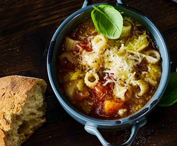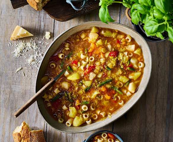 • de légumes variés (pommes de terre, carottes, courgettes, céleri-branche, tomates, blettes, citrouille par ex.), coupés en petits morceaux