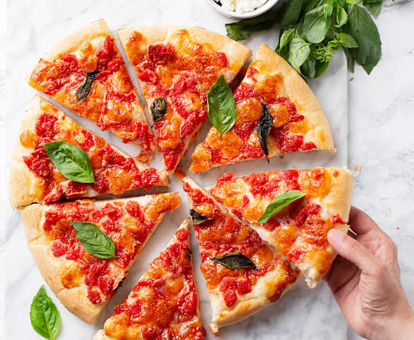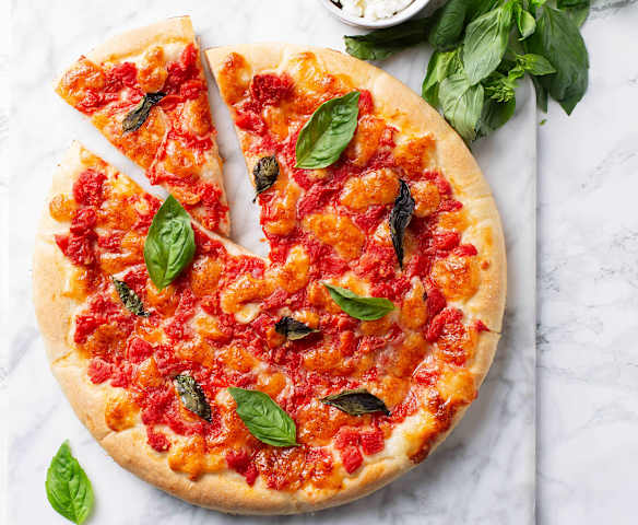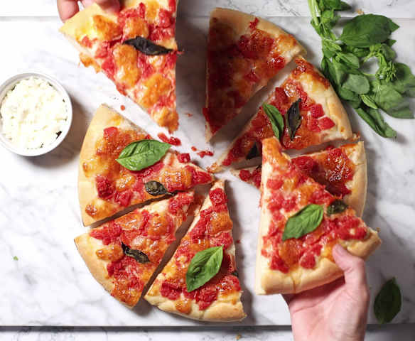 Pizza de trucha ahumada, alcaparras y mascarpone