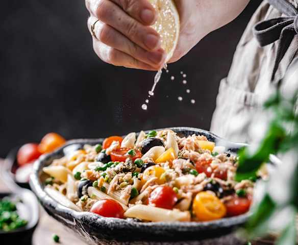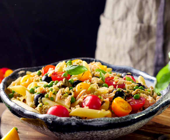 Sałatka z makaronu z pstrągiem i warzywami