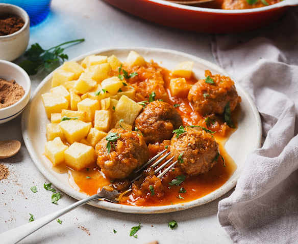 Crujientes de carrillera ibérica al vino tinto con dátiles