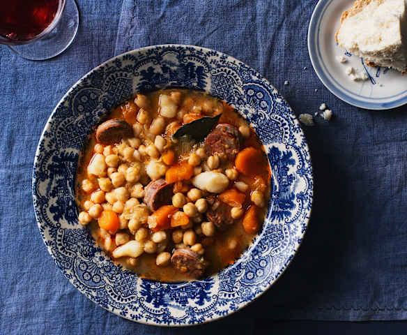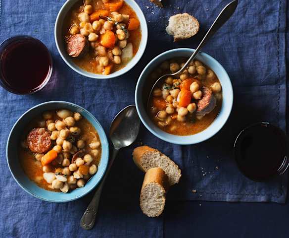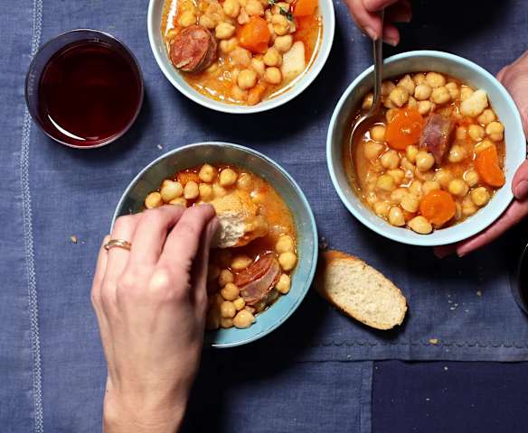Guiso de garbanzos con verduras y chorizo