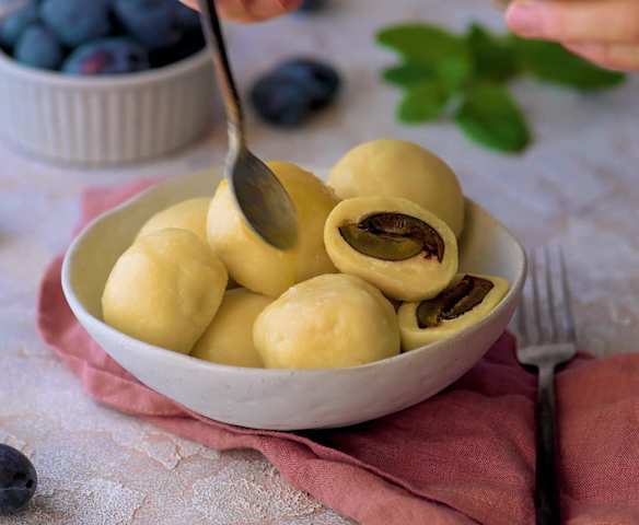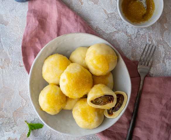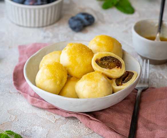 Pierogi z truskawkami ze śmietaną i miętowym cukrem