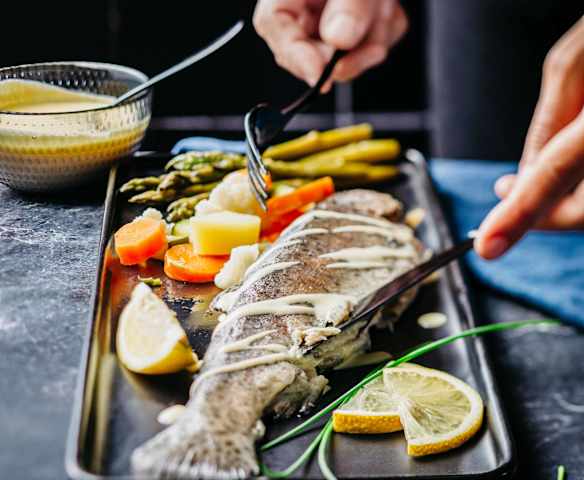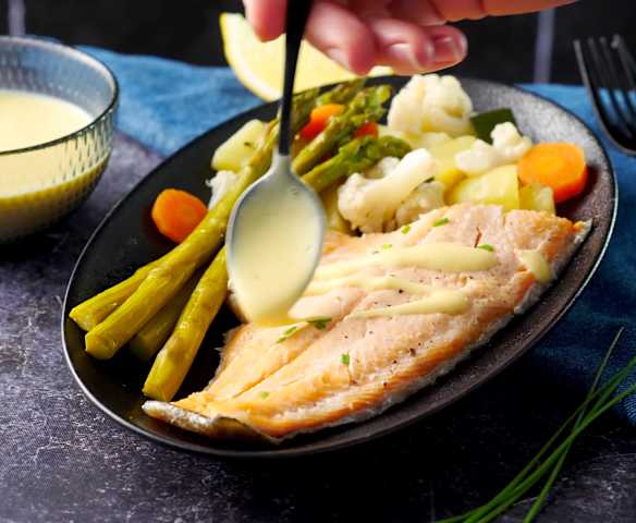 Show allŁosoś z brokułami i ziemniakami w sosie koperkowym