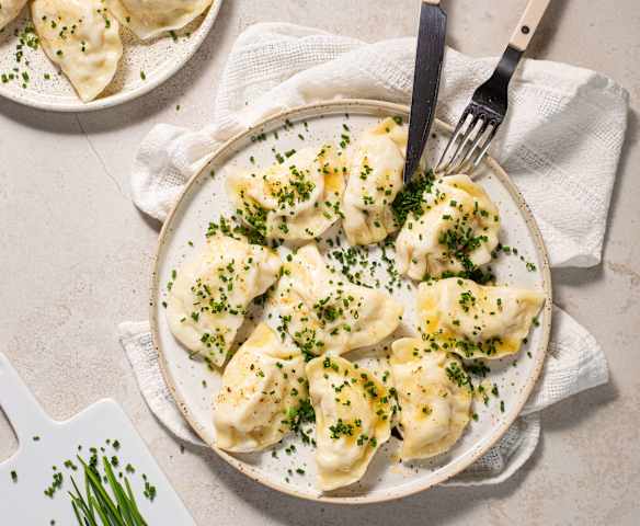 wody ciepłej, plus dodatkowa ilość do gotowania pierogów250 g