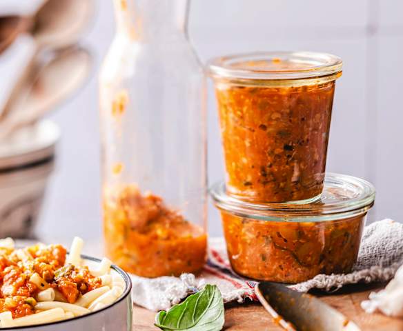 500 g krojonych pomidorów, z puszkiprzecieru pomidorowego, typu passata500 g