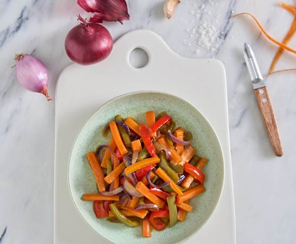 pimento vermelho cortado em tiras (5 cm de comprimento, 0,5 cm de espessura aprox.)100 g