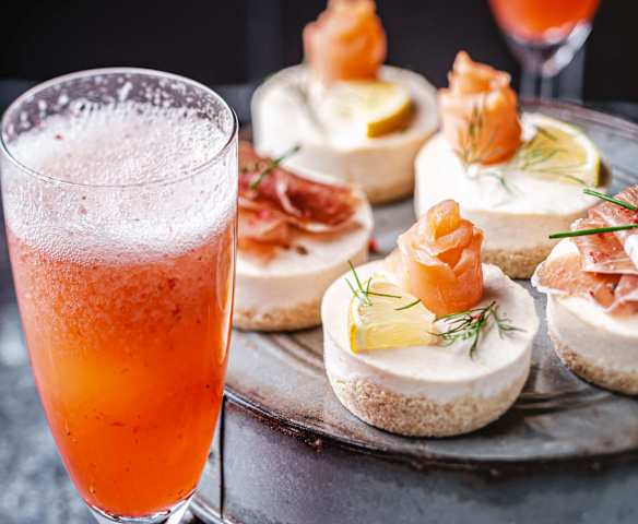 Cocktail fraise-champagne et minicheesecakes