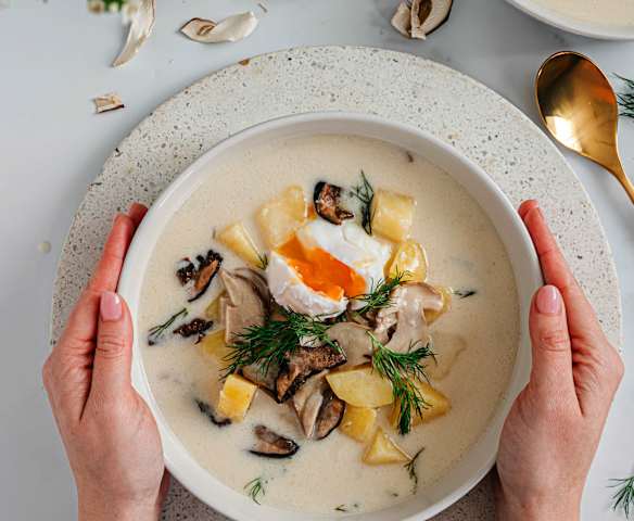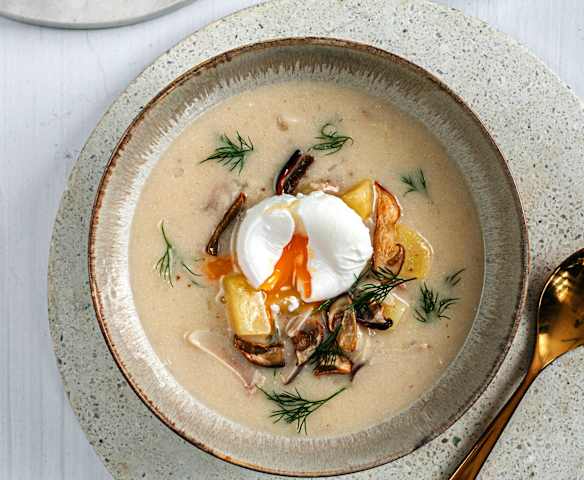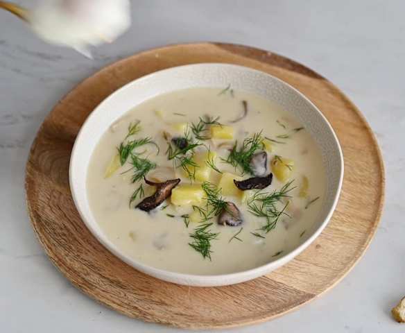 Česneková krémová polévka se šlehačkou a opečenými krutony
