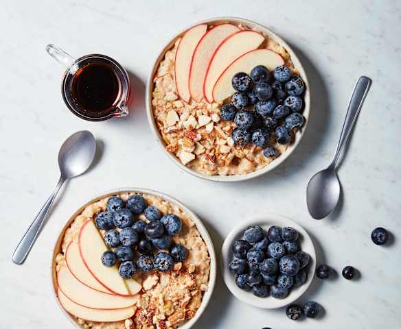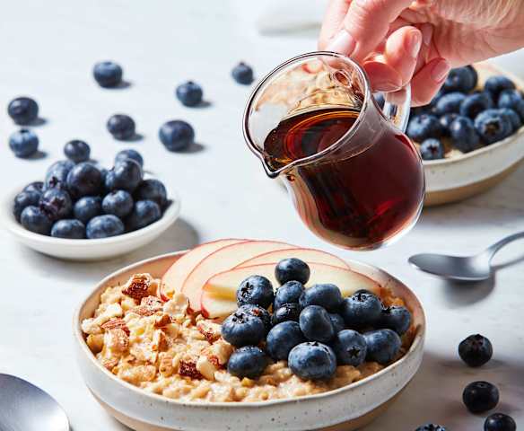 Gruau à l'érable avec pommes et bleuets