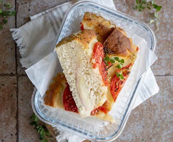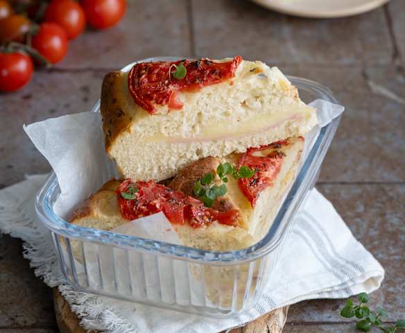 Focaccia ziemniaczana z szynką i serem