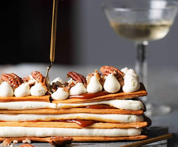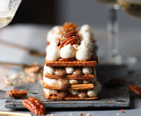 Mille-feuille vanille, caramel et noix de pécan