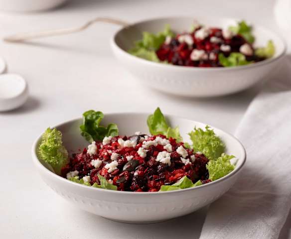 Kuskusový salát s baby špenátem, fetou a česnekovou zálivkou