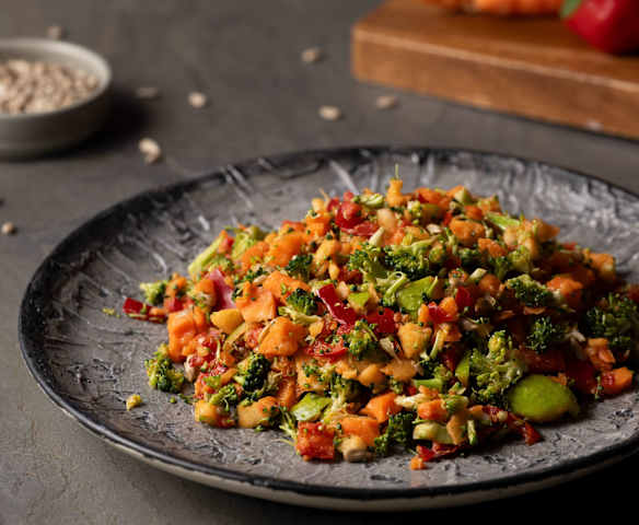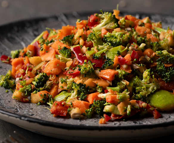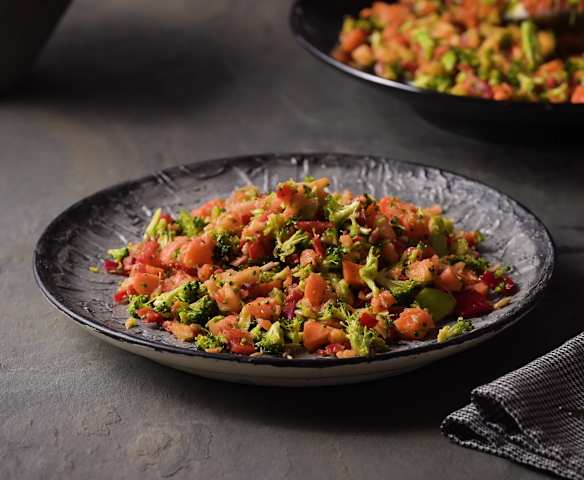 Kırmızı Biberli ve Kabak Çekirdekli Çiğ Brokoli Salatası