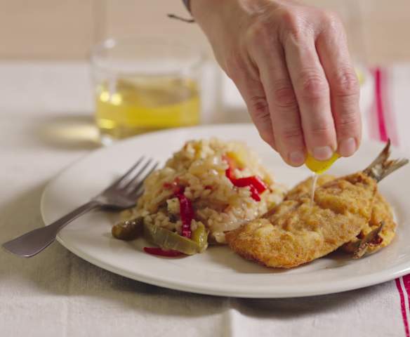 Salmão com crosta de amêndoa e tagliatelle com espargos