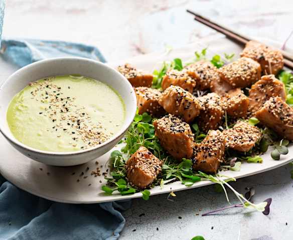 Show allŁosoś na parze z sosem sojowo-imbirowym i ryżem
