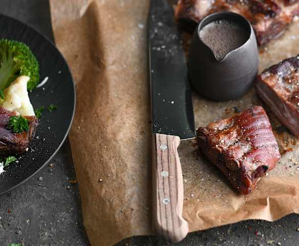 Herbaciane żeberka z warzywami, ryżem i sosem