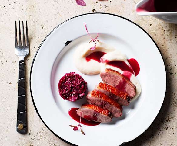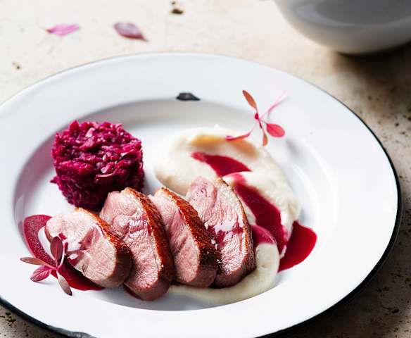 Magret de canard, chou rouge et céleri-rave