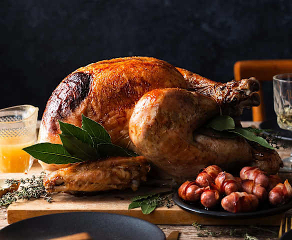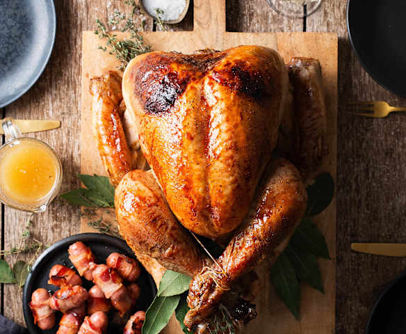 Pečená krůta s pancettou a citrónovo-bylinkovou nádivkou