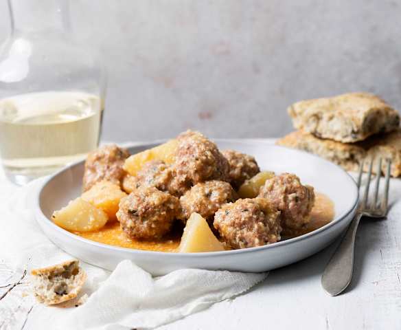 Tayín de ternera con arroz especiado y mini pasteles de pistacho