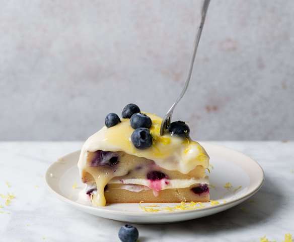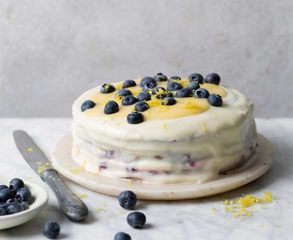 Gâteau aux myrtilles, glaçage au lemon curd