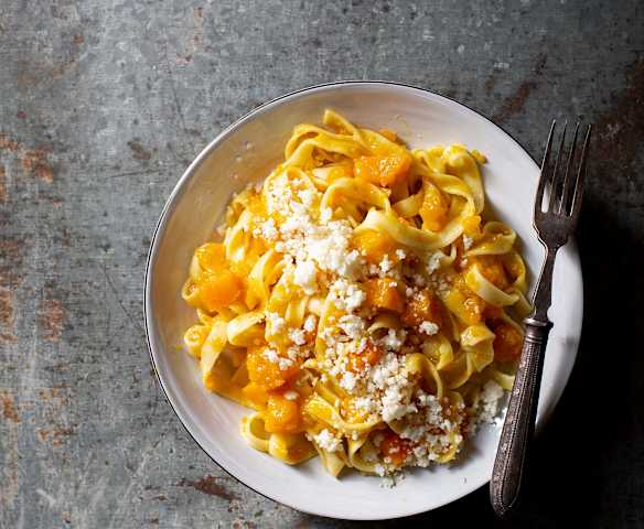 Pâtes crémeuses à la courge, scamorza et pecorino