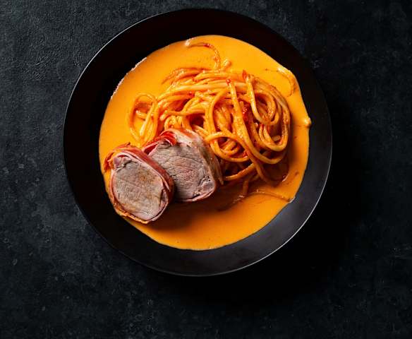 Filet de porc, sauce crémeuse au paprika et linguine