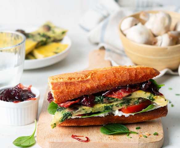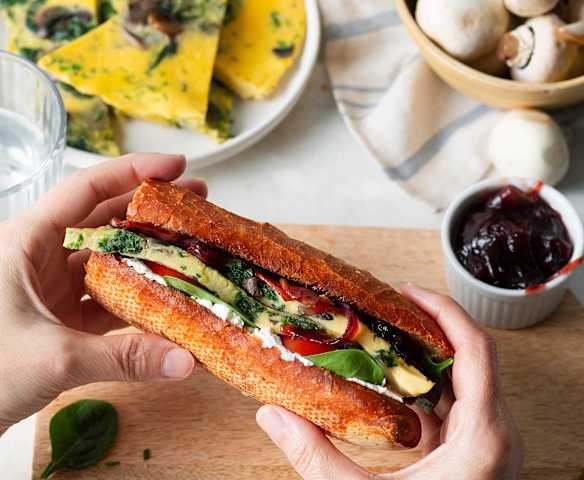 Sandwichs à la frittata de fromage de chèvre et au chutney d'oignons caramélisés