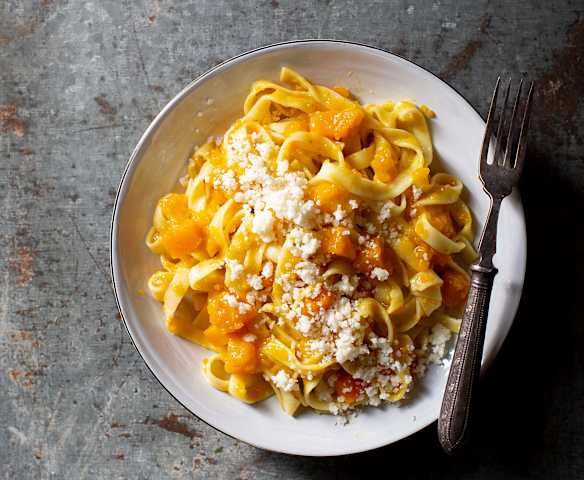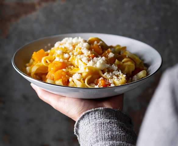 Krémová pasta risottata s dýní, scamorzou a pecorinem