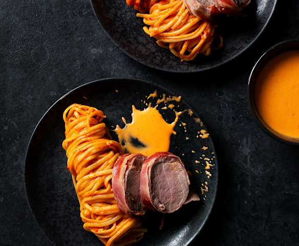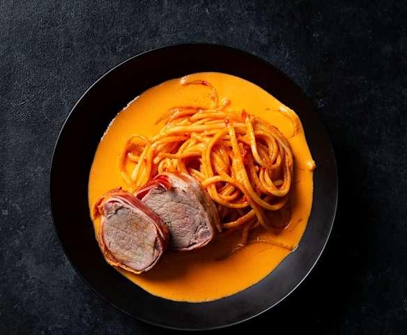 Vepřová panenka s paprikovo-smetanovou omáčkou a linguine