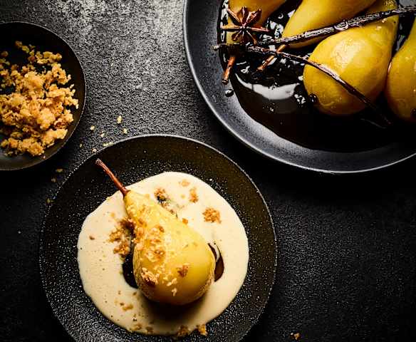 Vanilya ve Beyaz Şaraplı Armutlar ile Badem Kıtırı