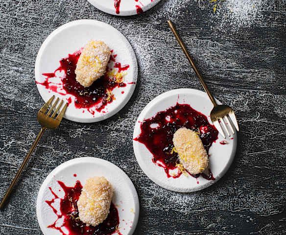Gnocchi de quark e sêmola com molho de frutos vermelhos