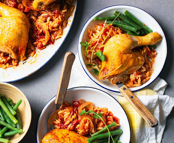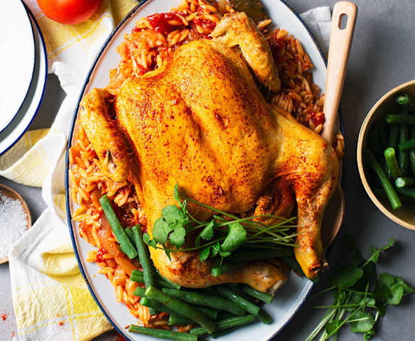 Domates Soslu, Arpa Şehriyeli Bütün Tavuk