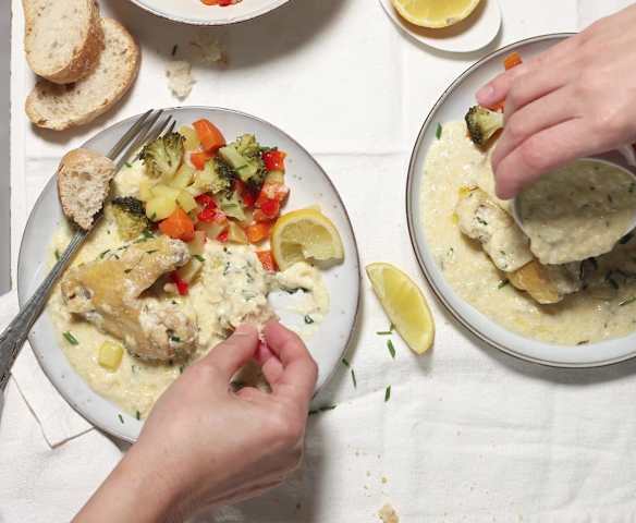 Alitas de pollo con salsa de sidra de manzana y vegetales