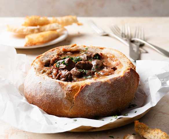 Pain garni de ragoût de veau