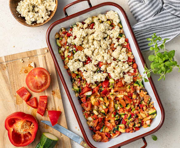 Basilikumrisotto mit Schmortomaten und Gemüse